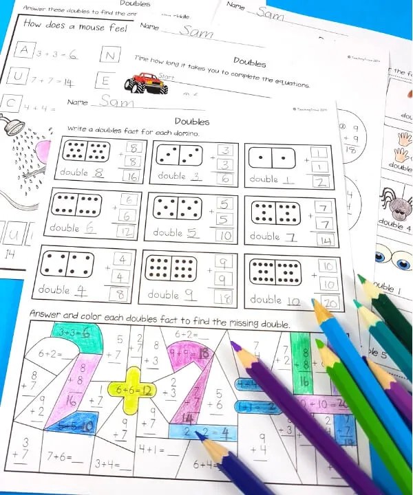 Kindergarten worksheets preschool worksheets first grade worksheets kindergarten addition worksheets kindergarten subtraction worksheets . Practice math problems like double facts within 20 with interactive online. This is great for 1st grade kids and we learn doubles from 1 to 5. Adding doubles worksheets and online activities. Preview image for worksheet with title doubles and near doubles.